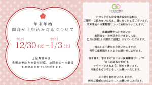 年末年始の休業期間についてお知らせいたします。